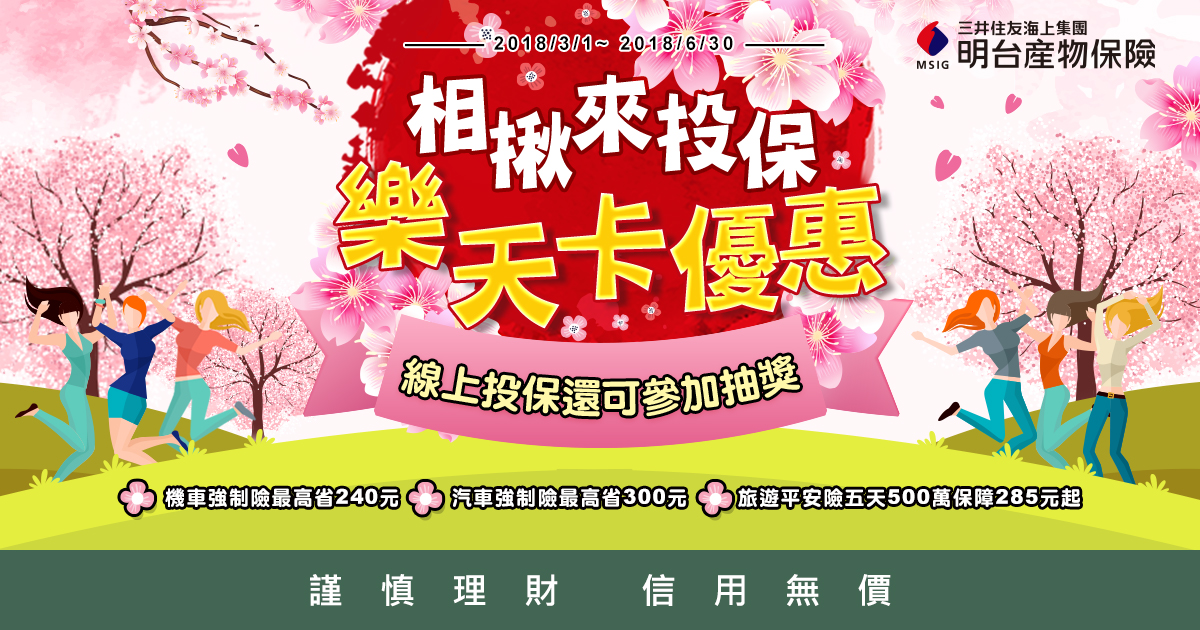 4.活動內容如有任何異動將公布於本活動網站,明台產物保險與樂天信用卡保留隨時變更、修改、暫停或終止本活動的權益。