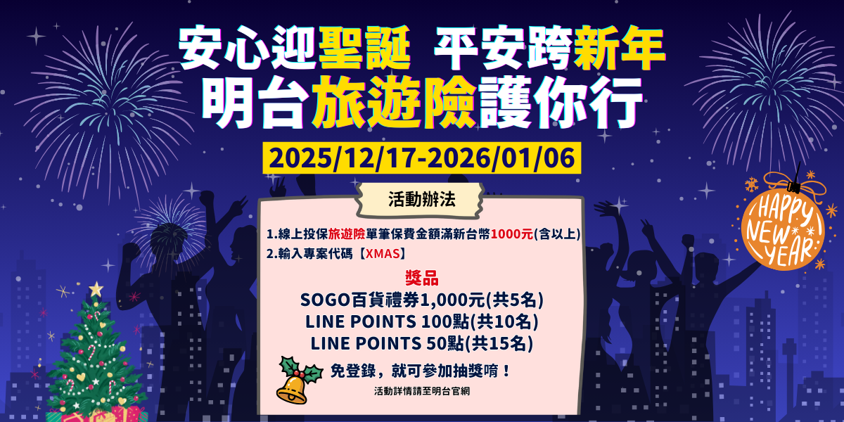 【限時活動】安心迎聖誕,平安跨新年,明台旅遊險護你行!